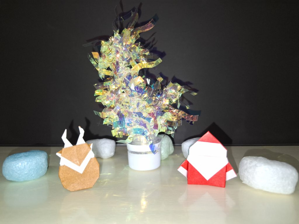 今年のクリスマスに向けて少しずつ作りためていた折り紙サンタ・トナカイ、キラキラ輝くミニツリー、オーナメントを飾りました🎅🦌