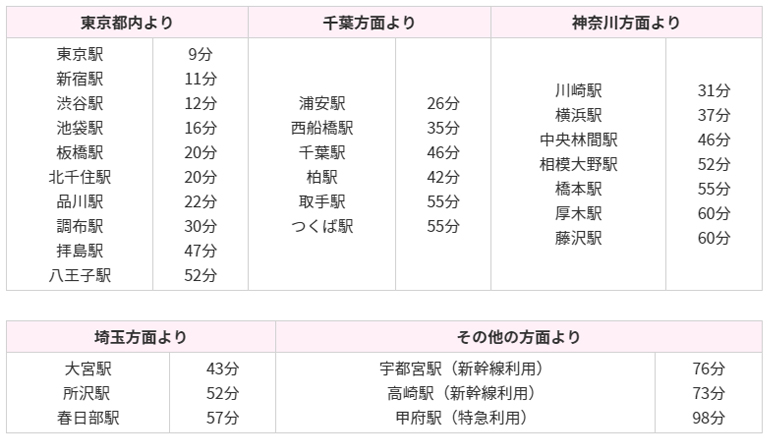 | 東京都内より | 千葉方面より | 神奈川方面より | |||